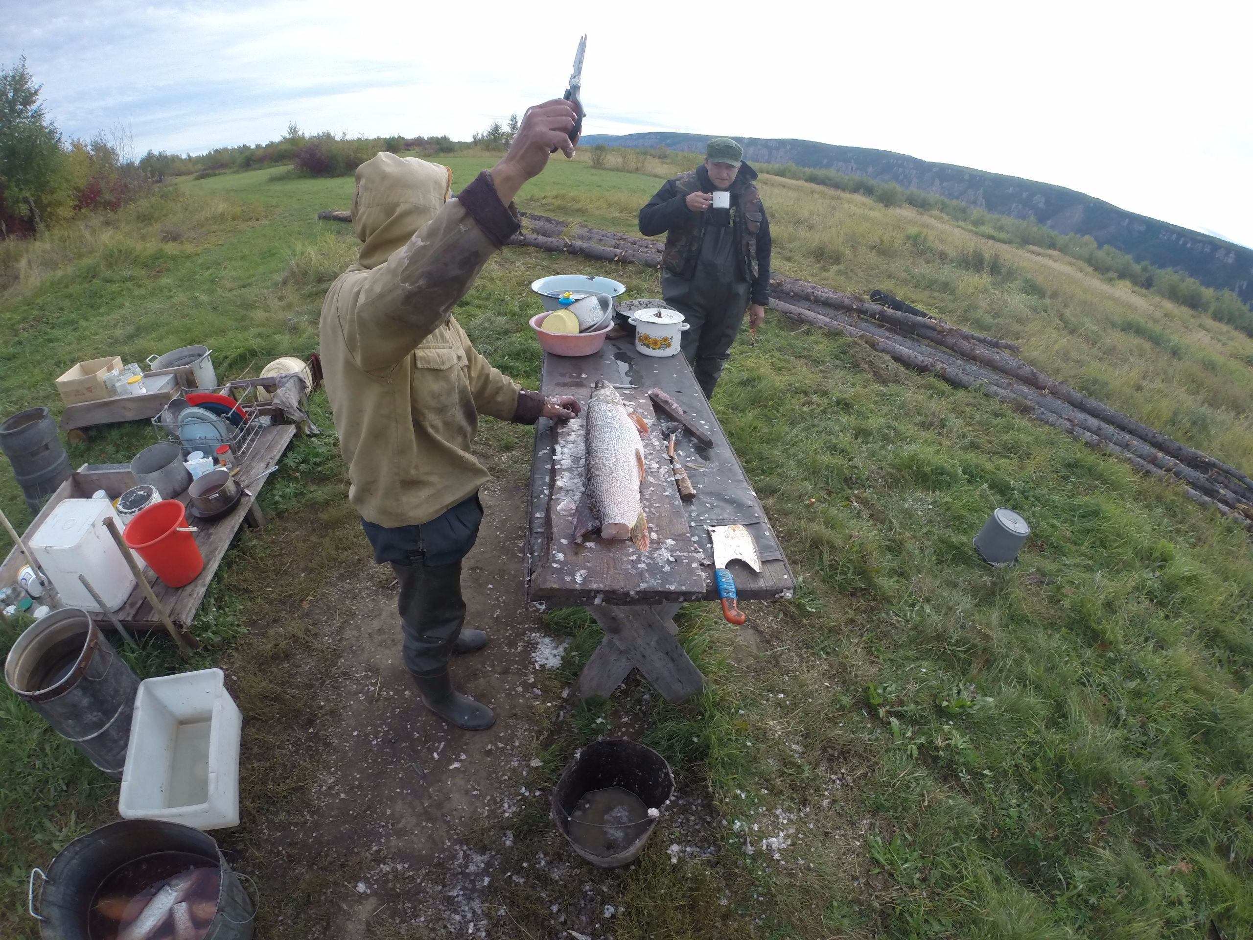За разделку взялся Антоныч — гостеприимство не позволило ему дать нам чистить рыбу