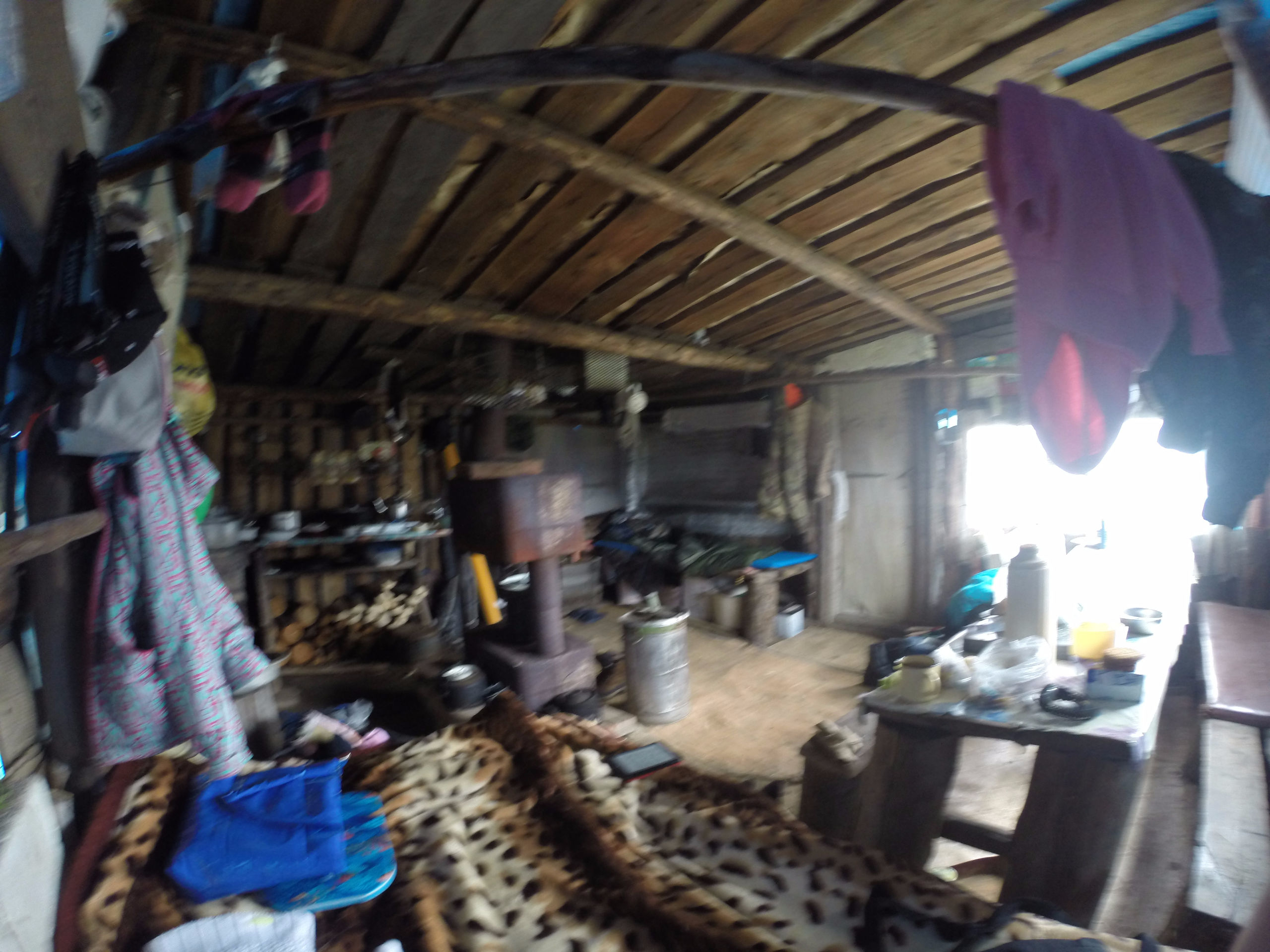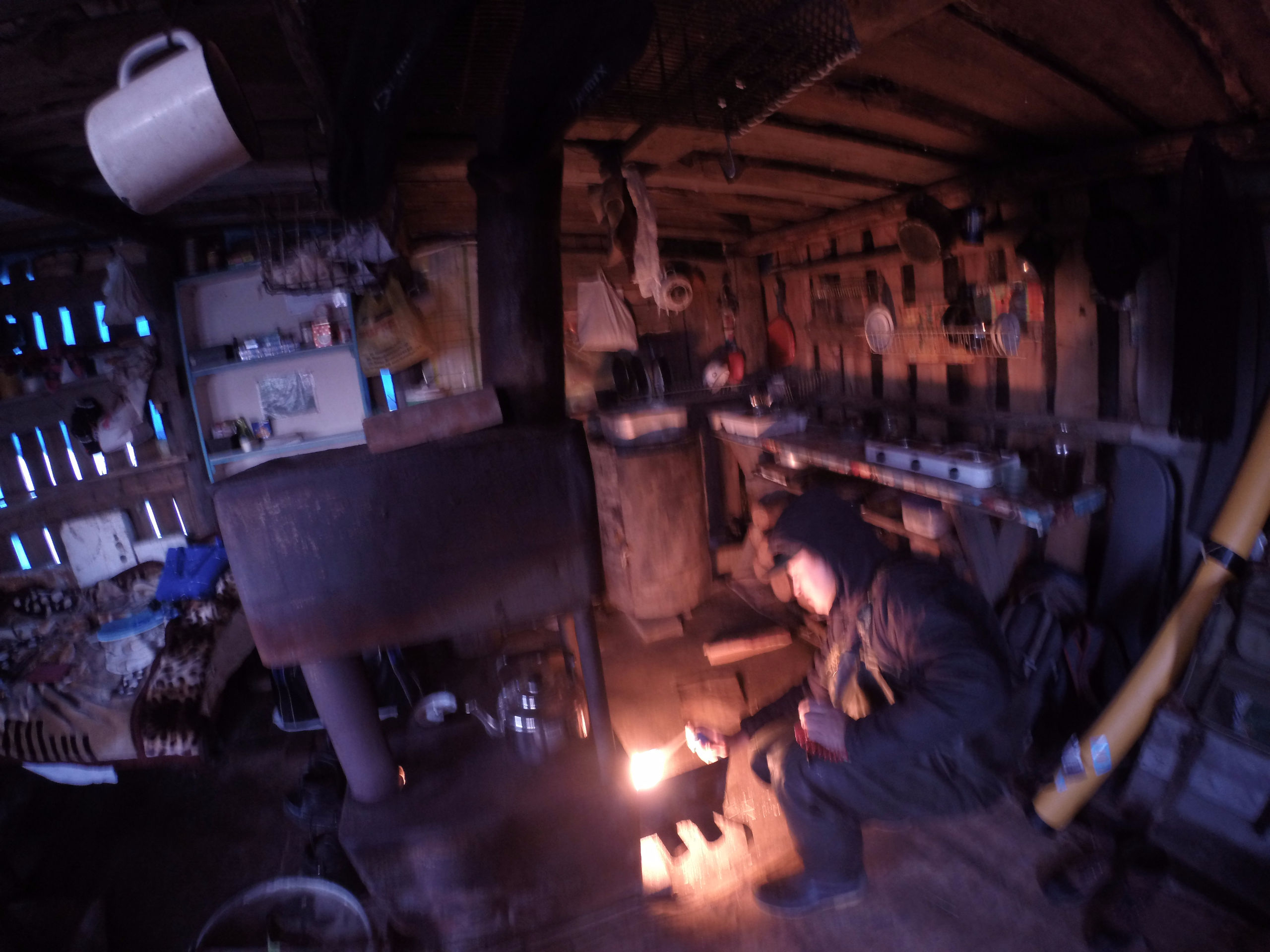 Следующее утро — выспались, согрелись горячим чаем, и снова начали собираться. На улице — около нуля.
