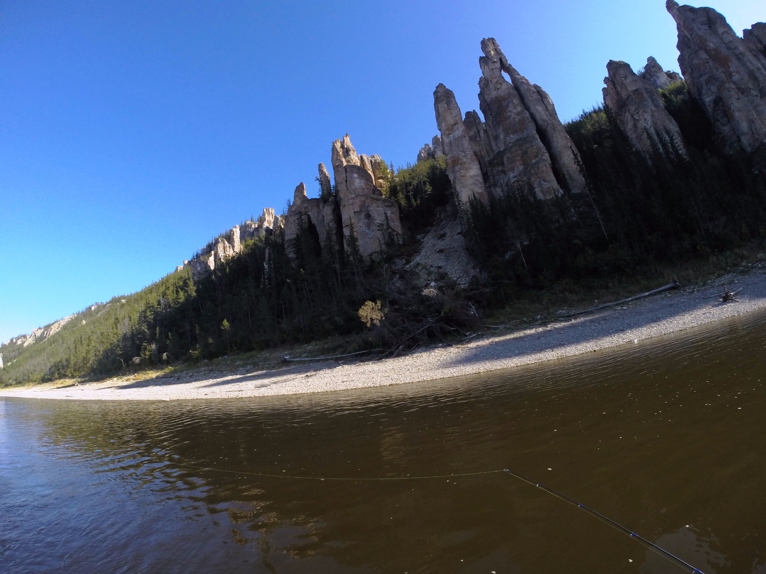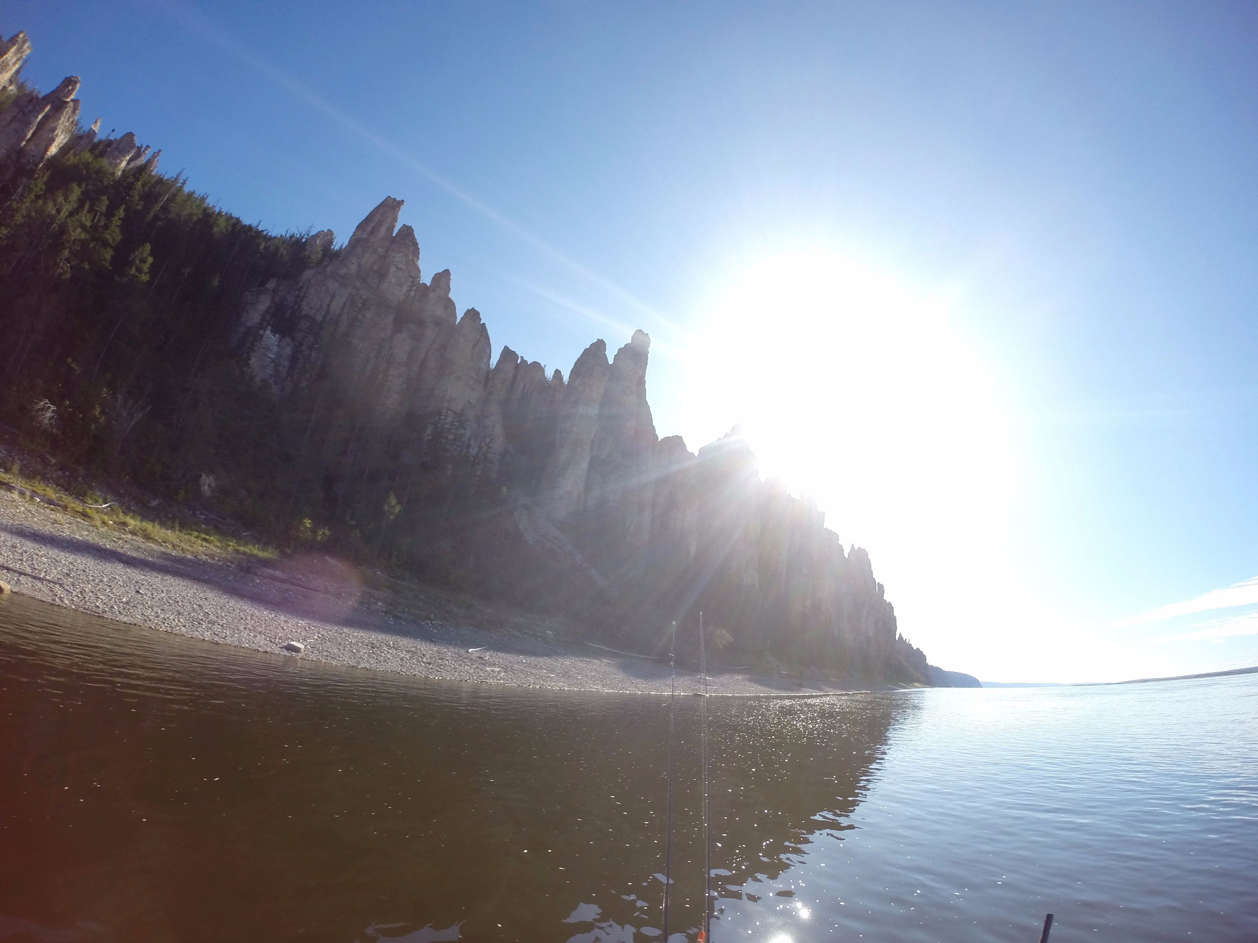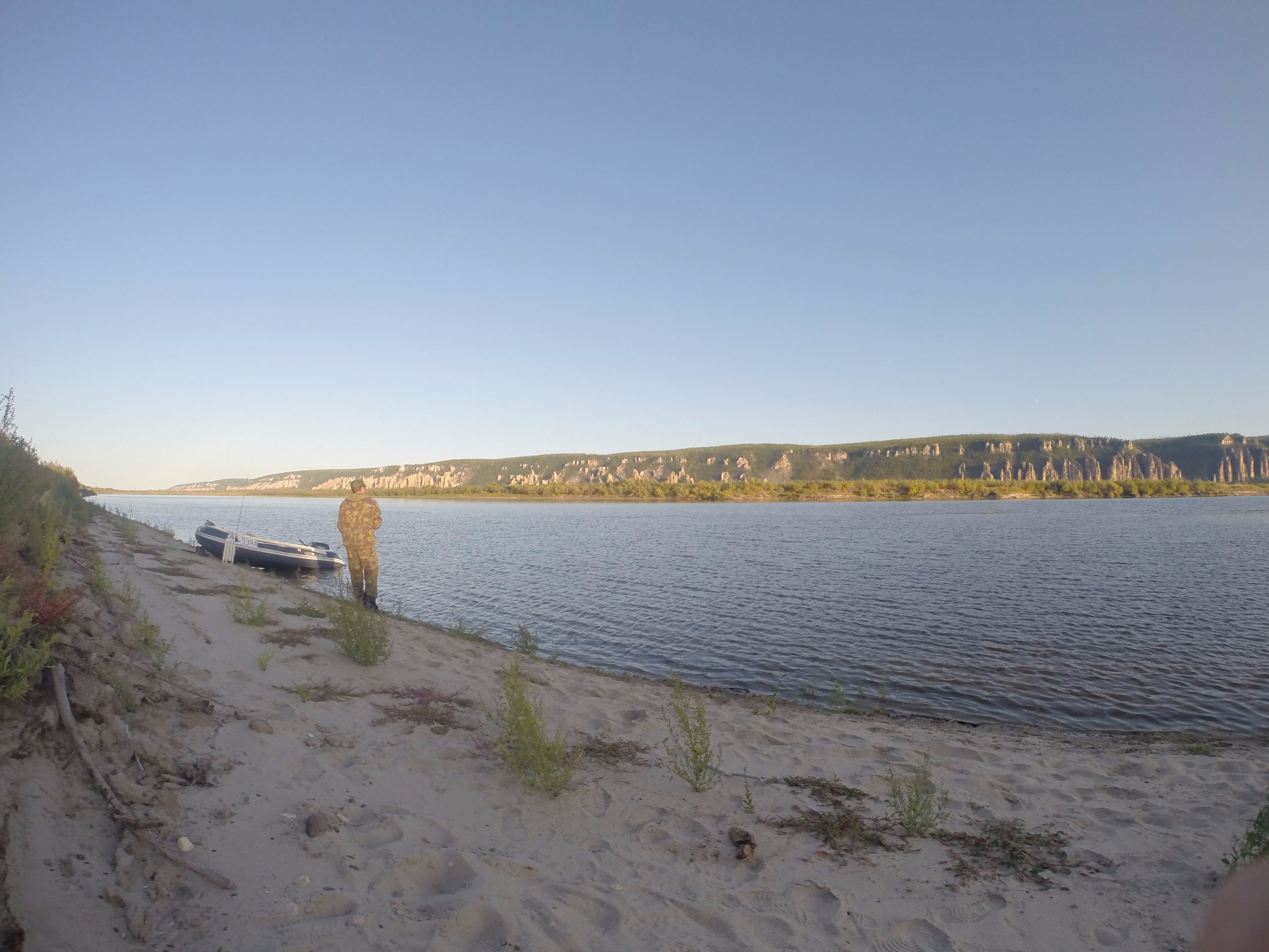 Сперва приплыли на небольшую косу посреди Лены. Дубак, солнце, много песка — и ни единой поклевки.