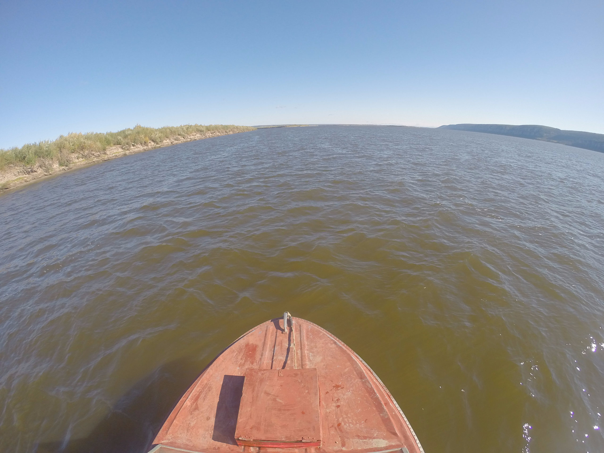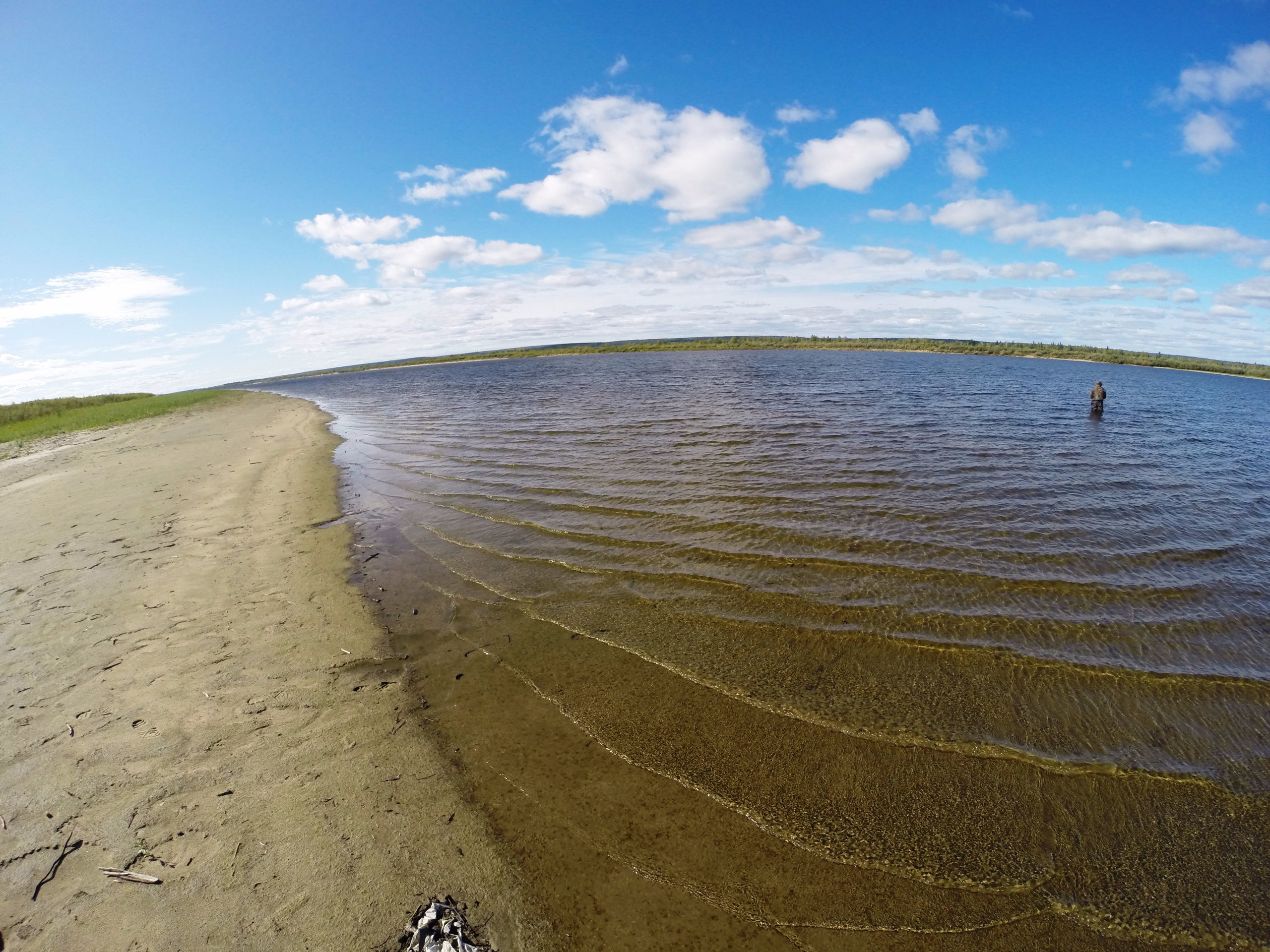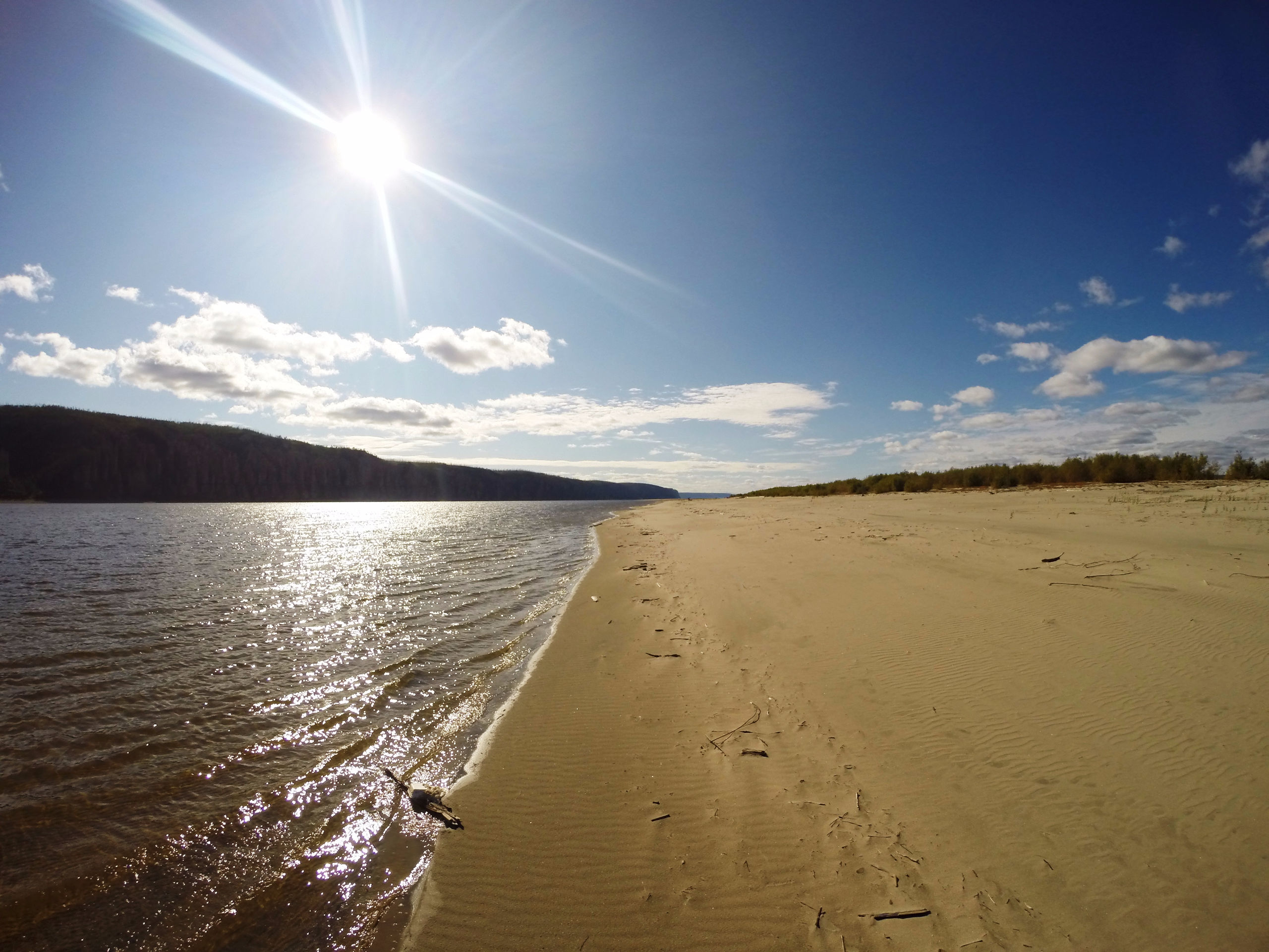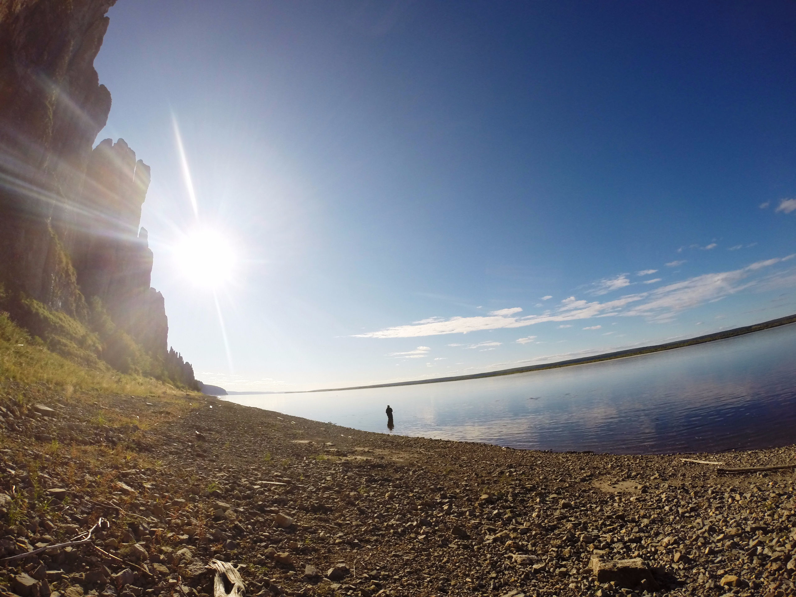 Сперва приплыли на небольшую косу посреди Лены. Дубак, солнце, много песка — и ни единой поклевки.