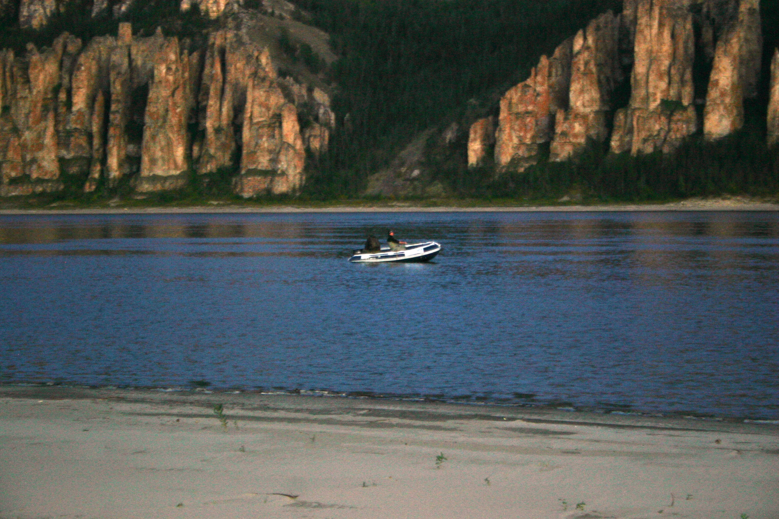 Разместились, пошли подготовили лодку — время было еще обеденное, поэтому решили поехать удить ленскую рыбу. У мужиков аж ладошки чесались.