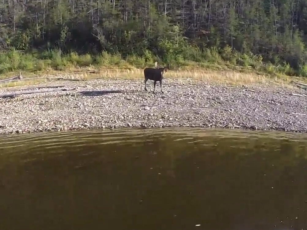 Однако мы решили посмотреть поближе, сесть в лодку и догнать его. Пофотать. Лось не дурак, повернул назад и дал деру. Вон, видно, как бежит по берегу.
